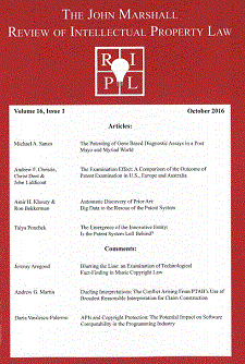 The Examination Effect: A Comparison of the Outcome of Patent Examination in the US, Europe and Australia, 16 J. Marshall Rev. Intell. Prop. L. 21 (2016)